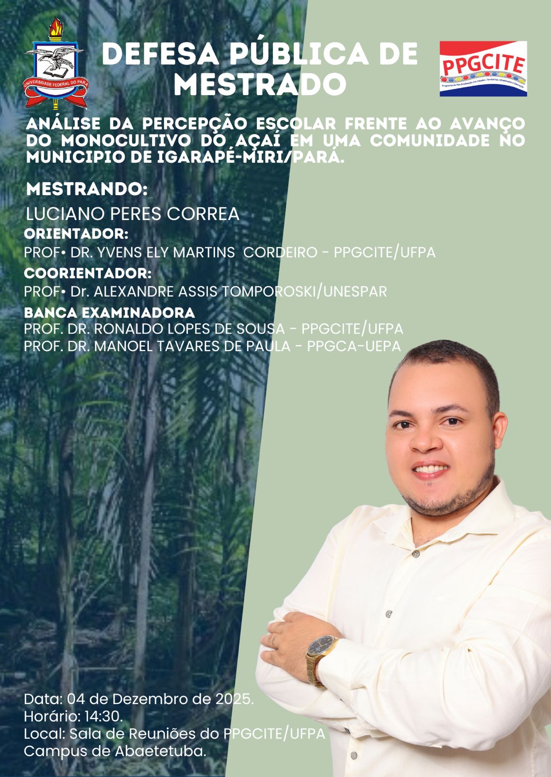 A Coordenação do Programa de Pós-Graduação em Cidades, Territórios, Identidades e Educação, do Campus Universitário de Abaetetuba, torna público o Resultado Preliminar das Entrevistas do Mestrado Turma 2026, do Edital 05/2025.